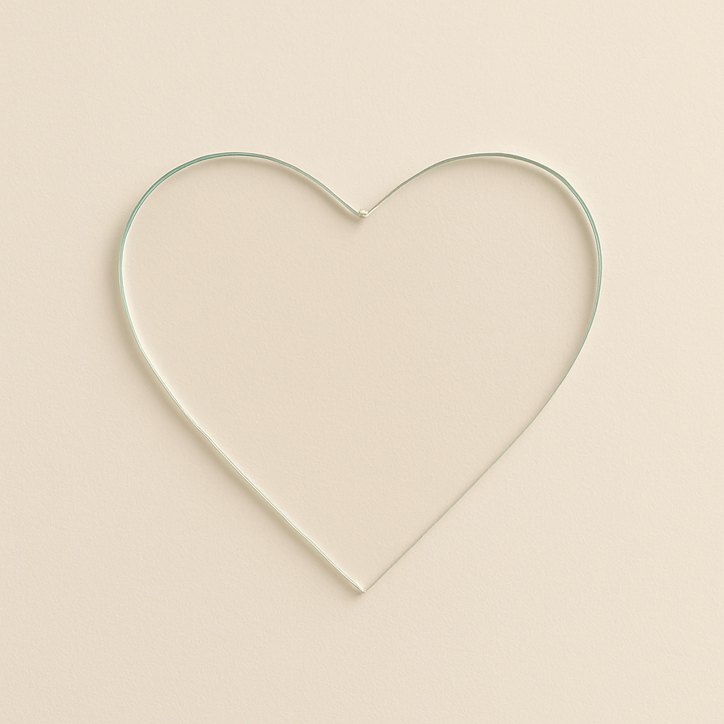 Pieza cortada a mano en vidrio de 2mm. Cada corazón puede presentar ligeras variaciones.