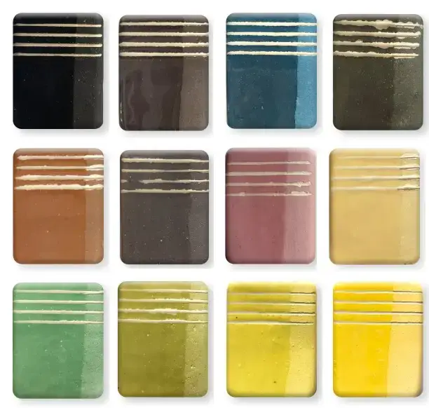 Promo Engobes para cerámica. 12 colores x 50grs cada uno: cobalto, lima, uva, verde, rosa, negro, ocre, marrón, pistacho, wengue, amarillo, gris.