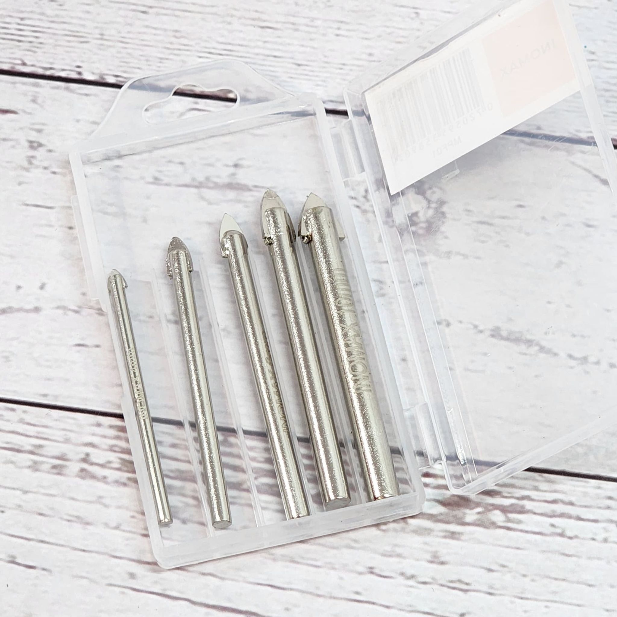 Set de 5 mechas punta flecha, para vidrio, cerámico y porcelanato. Medidas: 4 / 5 / 6 / 8 / 10mm